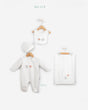 Kit de naissance 4 pièces : barboteuse, bonnet, bavoir et couverture