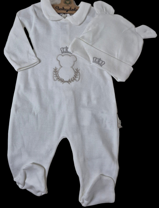 Barboteuse en blanc cassé avec son bonnet en coton organique