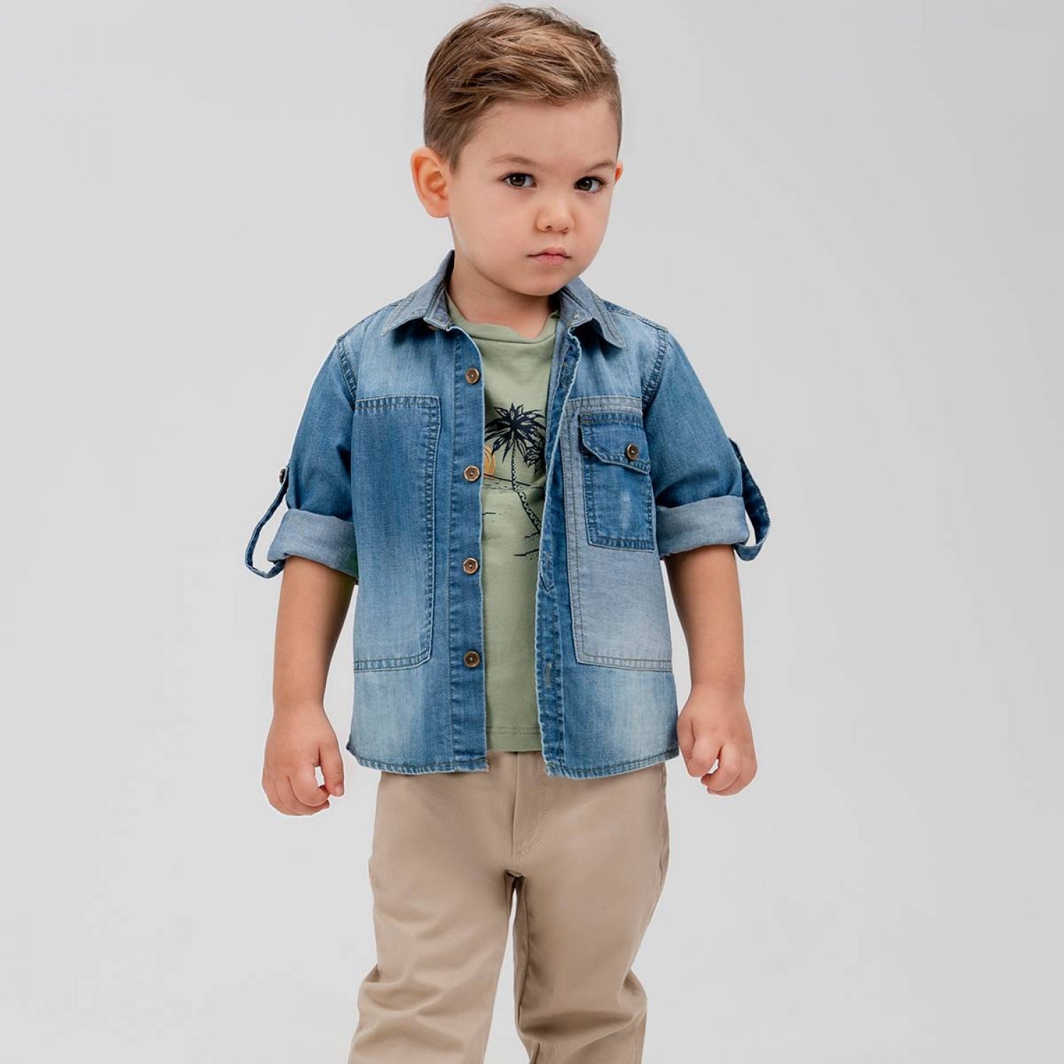 Ensemble 3 pièces pantalon jean, t-shirt et chemise à zip, 97% Coton et 3% Lycra