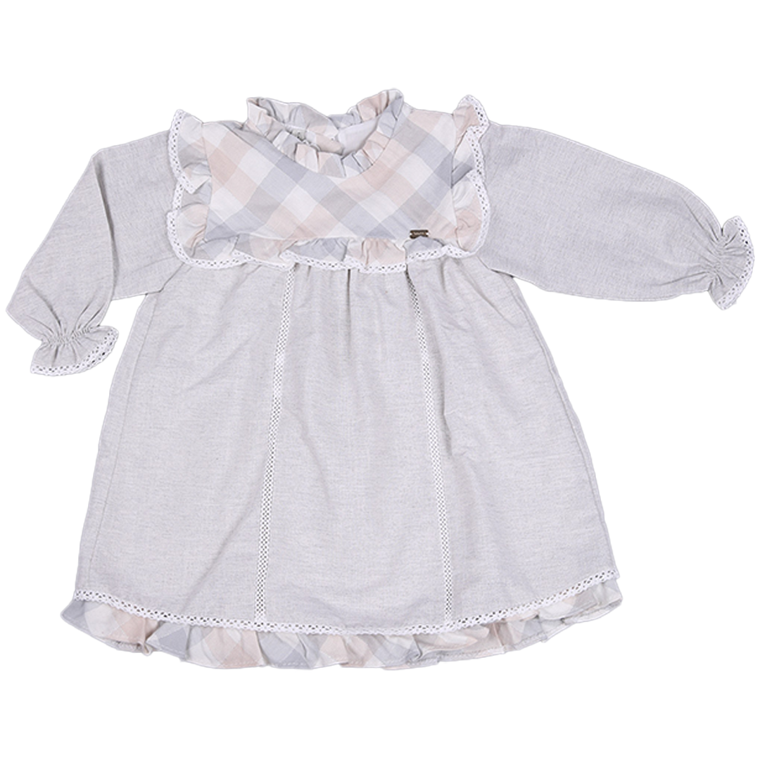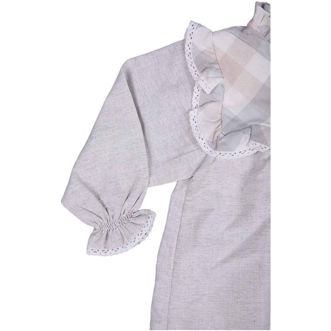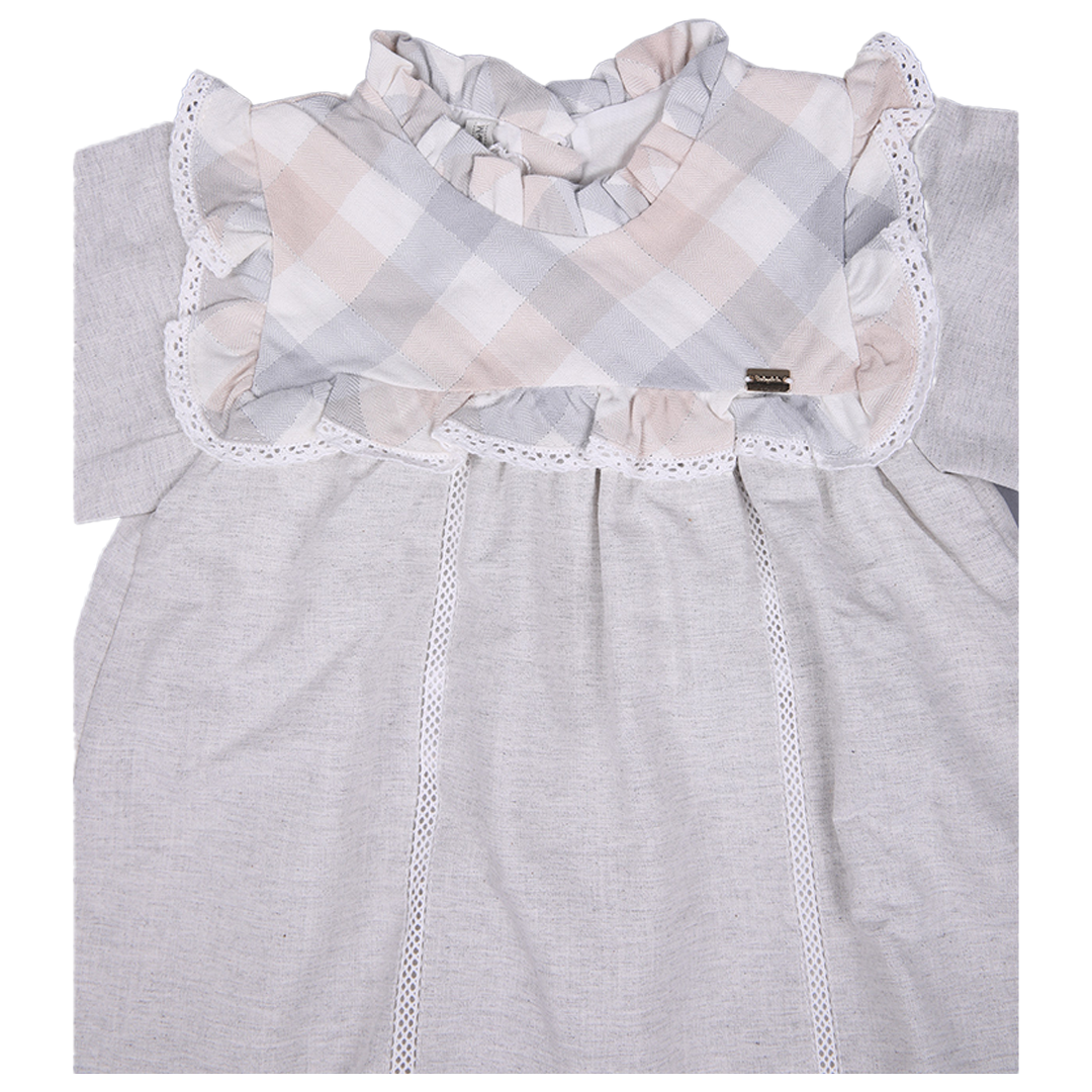 Ensemble 5 pièces : Robe en coton-lin avec bonnet assorti, chaussettes, culotte et chaussons