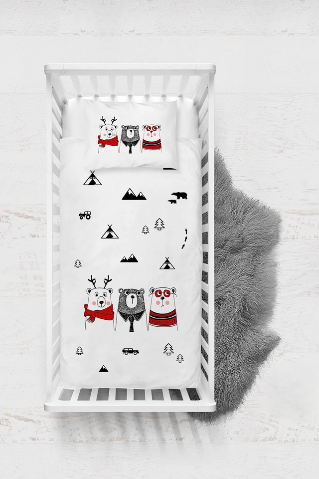 Housse de couette 100 x 150 cm 3 Bears accompagnée d'un taie d'oreiller 35*45 cm et d'un protège matelas