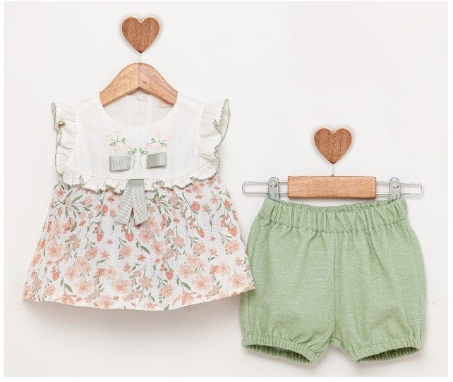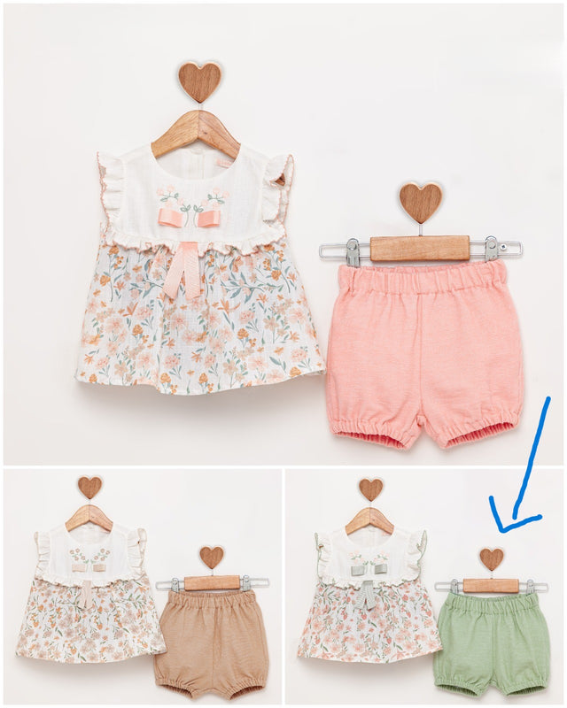 Ensemble short vert et haut fleuri