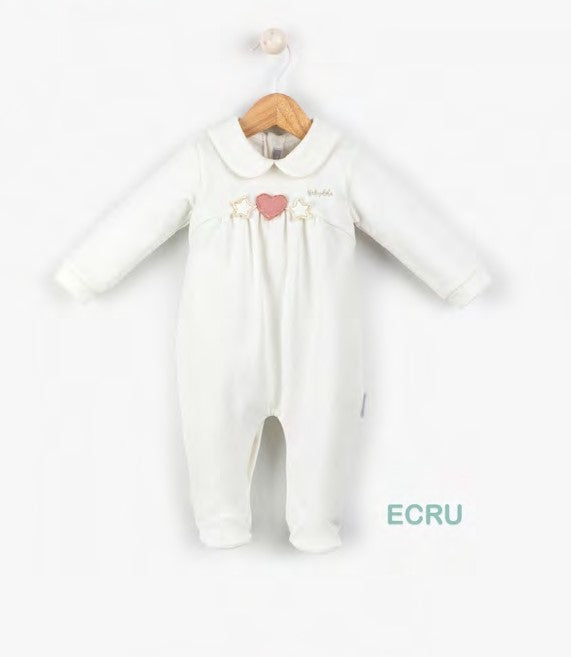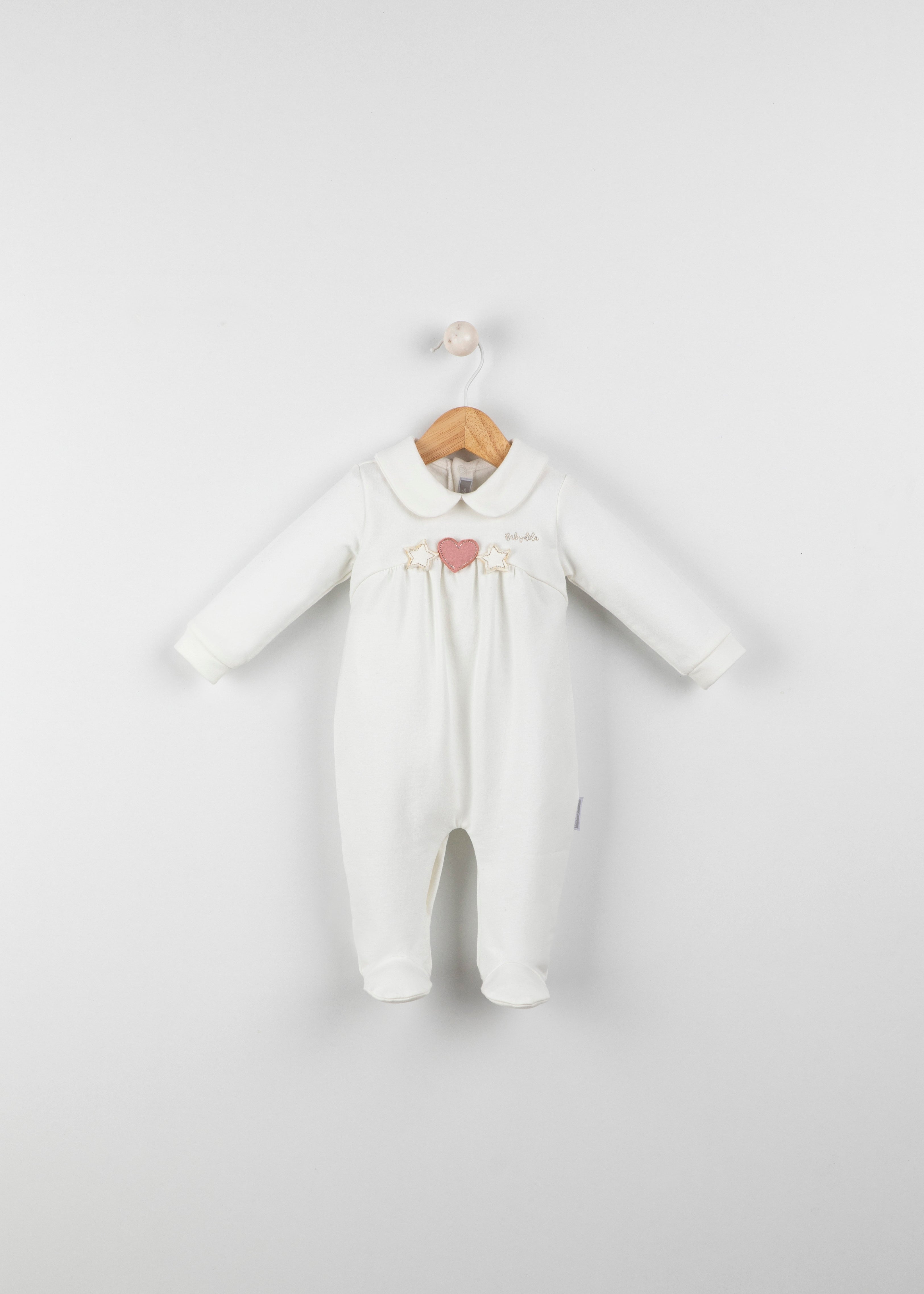 Barboteuse 100% coton en blanc cassé avec cœur et étoile