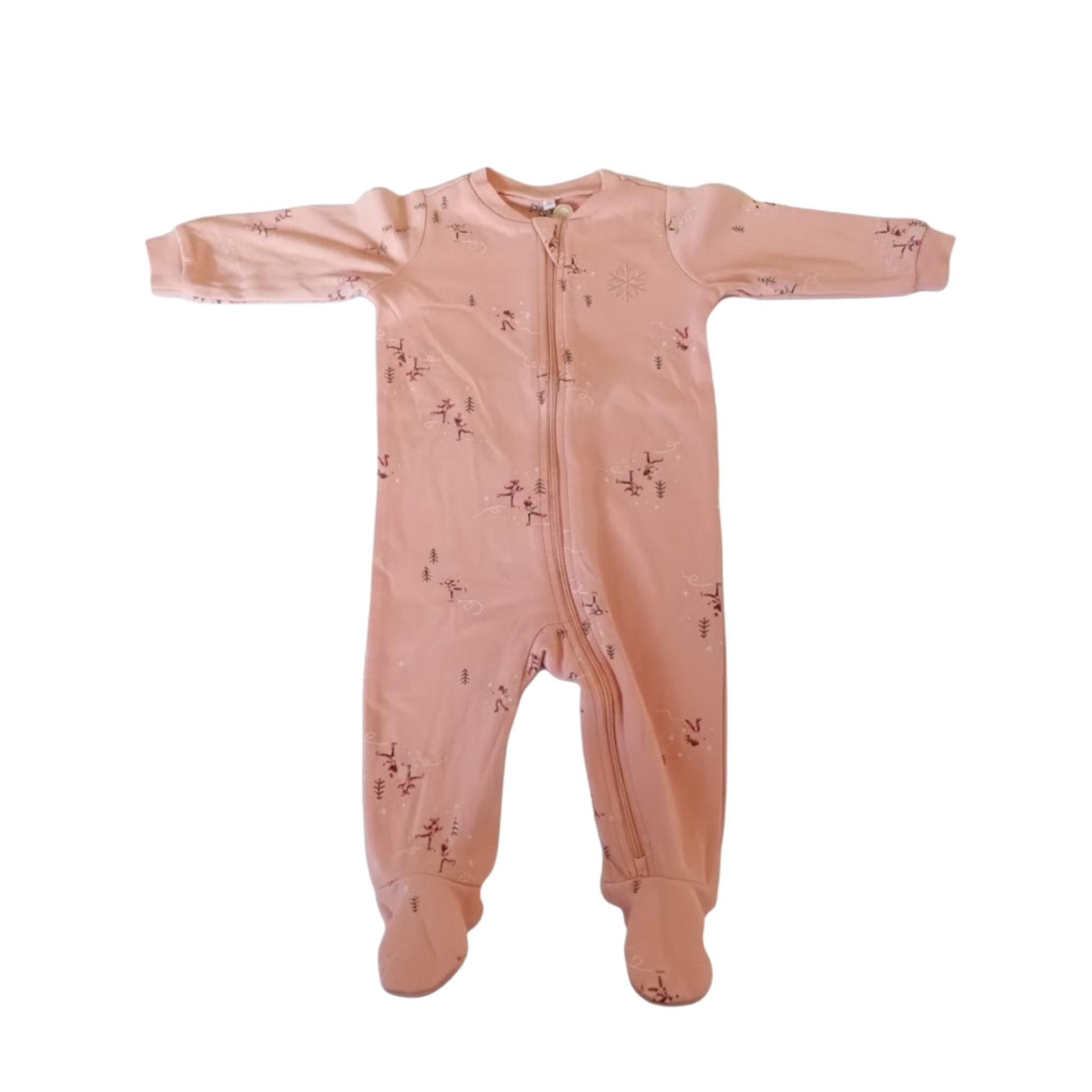 Barboteuse en coton organique, avec zipper s'ouvrant par le bas et le haut (rose)