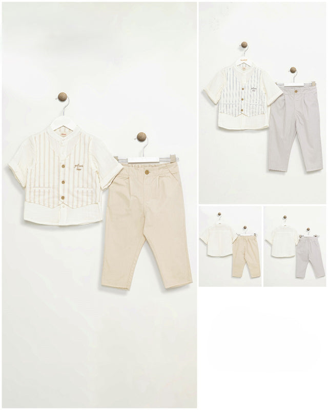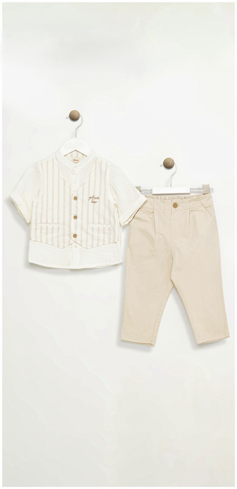 Pantalon beige, chemise et gilet intégré