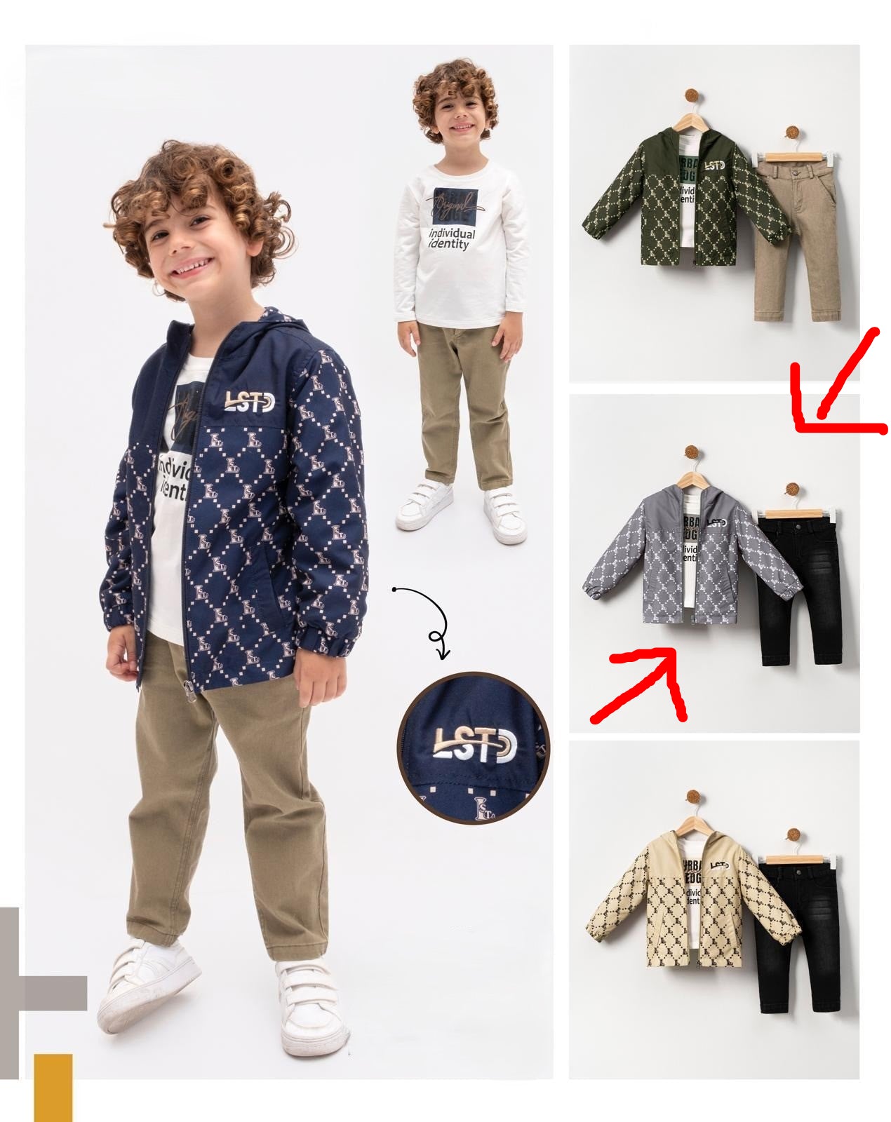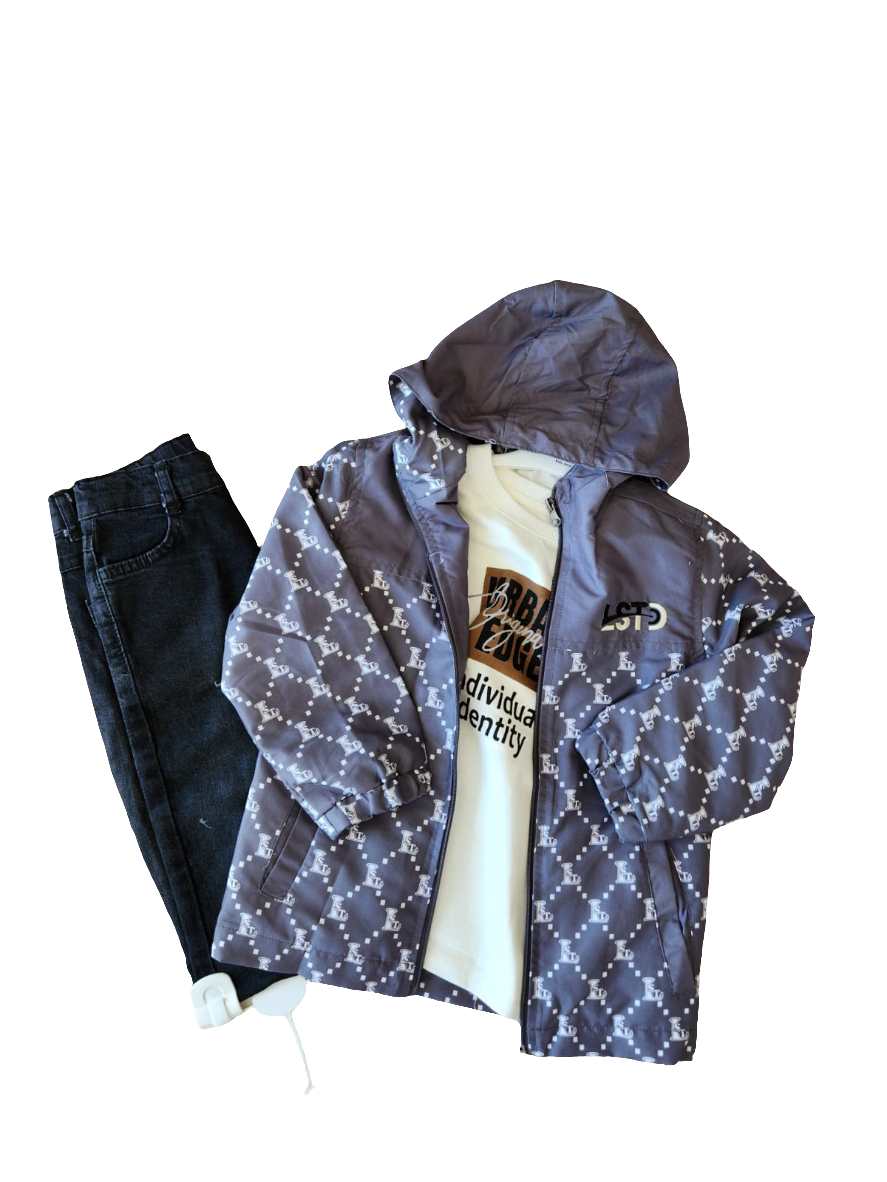 Ensemble 3 pièces pantalon, t-shirt manche longue et veste (modèle en gris)