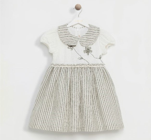 Robe à petite manche à rayures grises