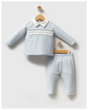 Ensemble 2 pièces pantalon et haut avec col, bleu